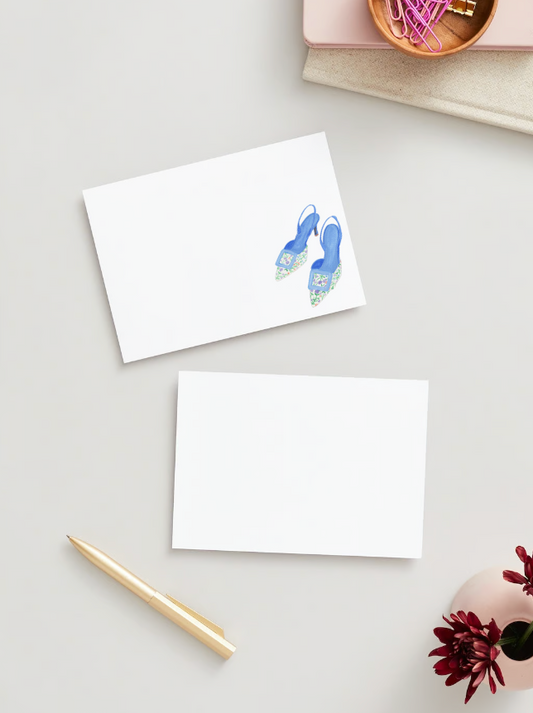 Stationery Set: Watercolor Blue Floral Heel